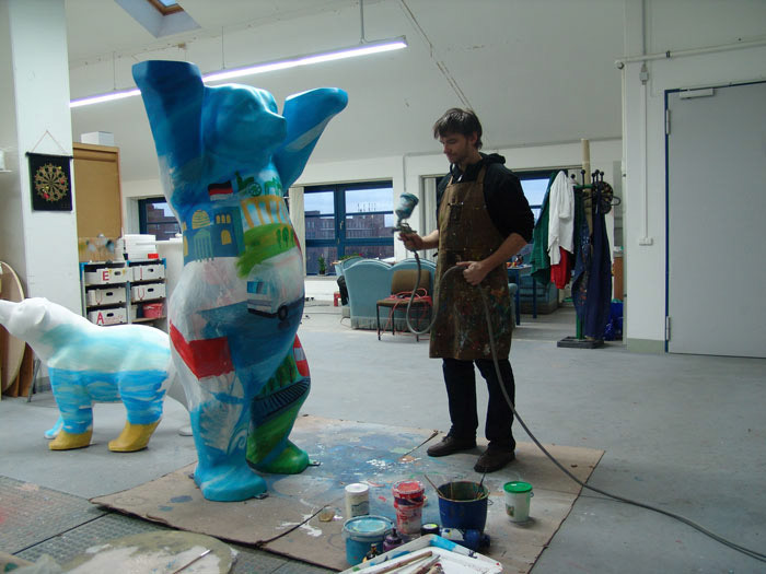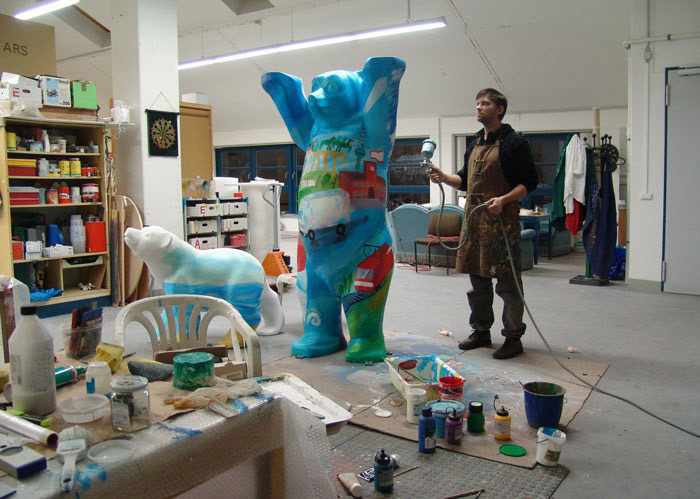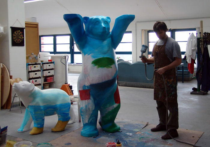 Fotografische Einblicke in die Geschichte der Buddy-Bären: Projekte, Charity Ausstellungen, Workshops, Atelierräume und Entstehungsorte.
